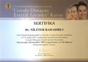 Cerrahi Olmayan Estetik İşlemler Kursu “Mezoterapi, Dermaroller, Prp Uygulamaları ve Cilt Bakımı”